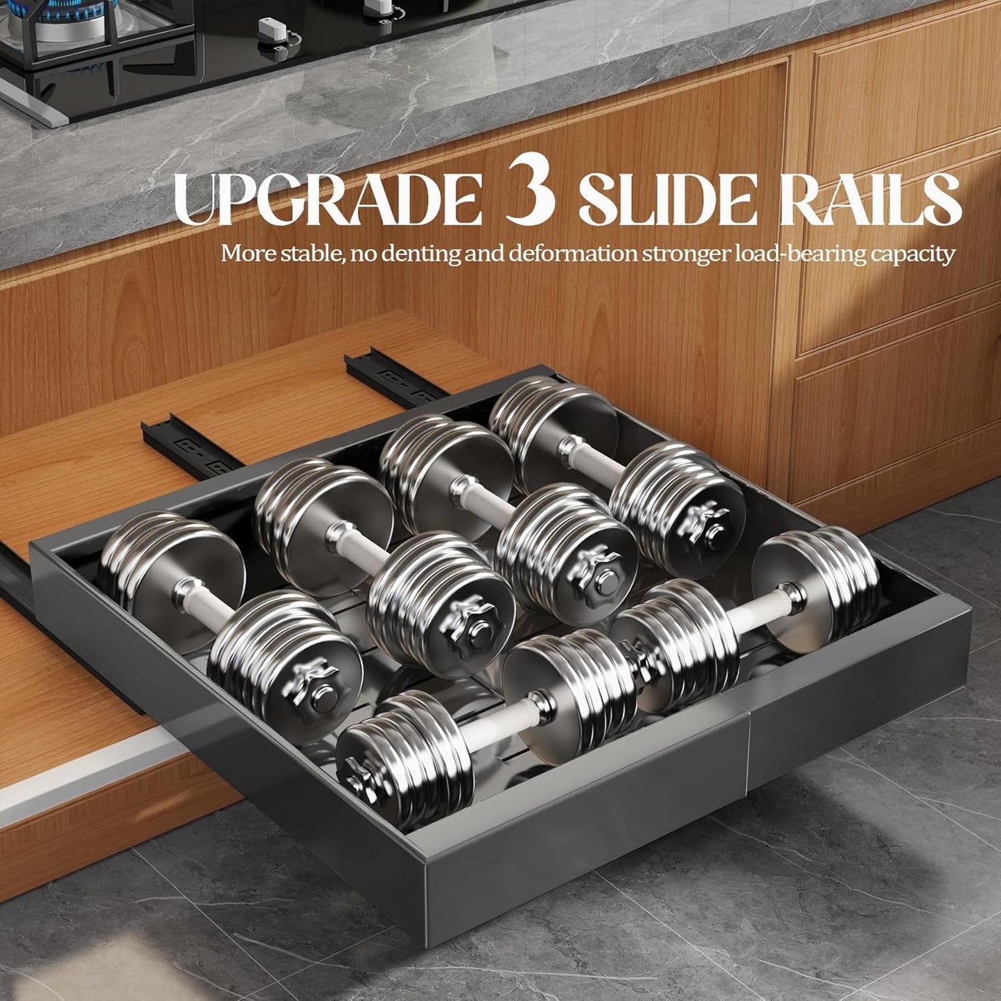 1 Pack Expandable Pull Out Cabinet Organizer 21"Deep with Raising Pad for Framed Cabinets,Upgrade 3 Slide Rails Slide Out Drawers,No Drill Roll Out Shelves,Adjustable Width 12.1"-20.4" Black